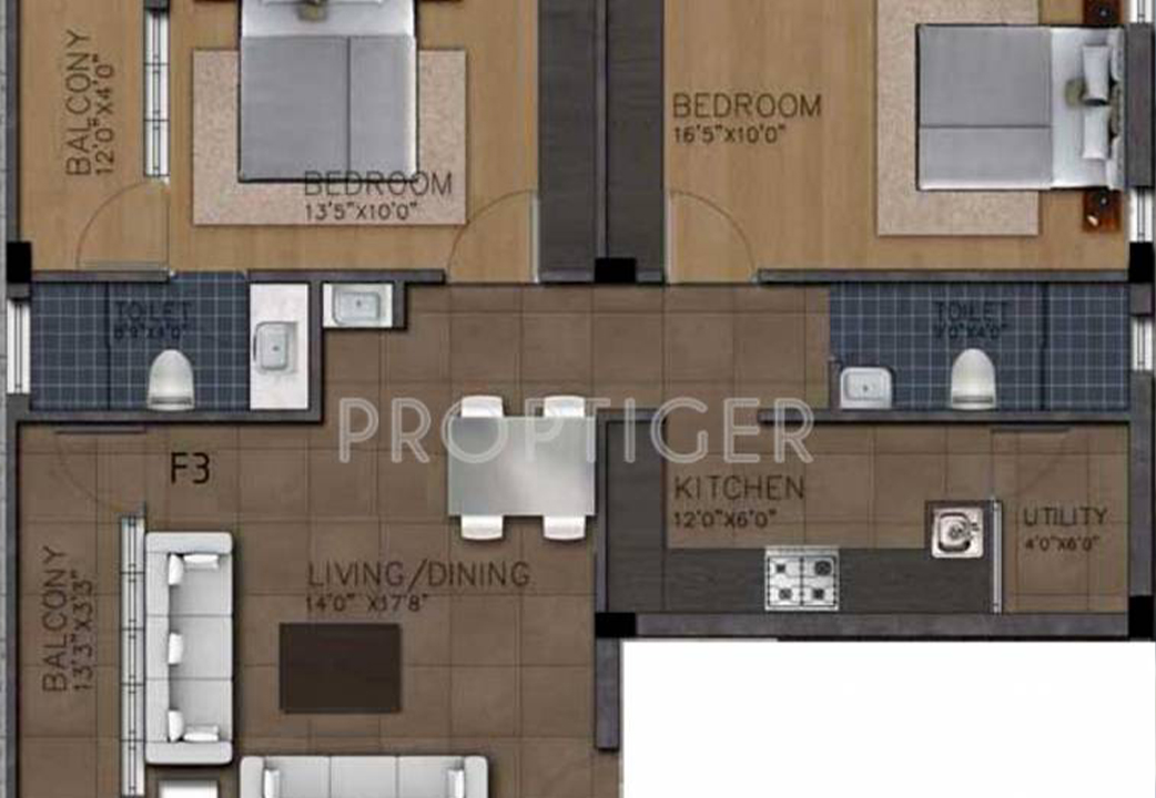 Area of Flats / Apartments 1024 - 1207 Sq.ft.